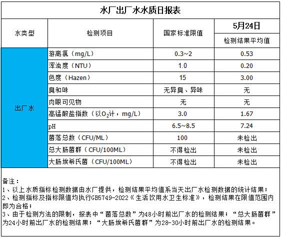 水廠出廠水水質(zhì)日報表(2025-5-24)