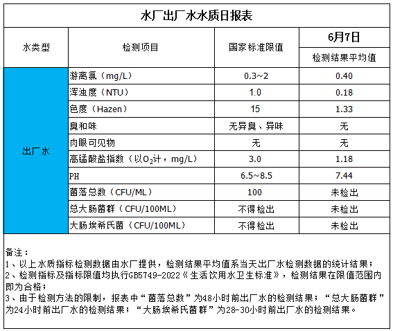 水廠出廠水水質(zhì)日?qǐng)?bào)表(2025-6-7)