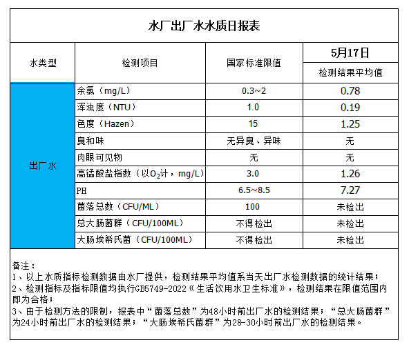 水廠出廠水水質(zhì)日報表(2023-5-17)