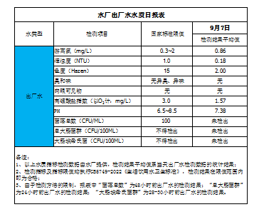 水廠出廠水水質(zhì)日報表(2023-9-7)