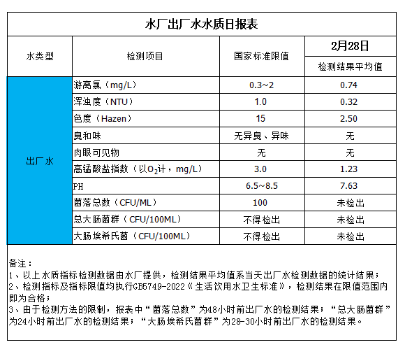 水廠出廠水水質(zhì)日?qǐng)?bào)表(2024-2-28)
