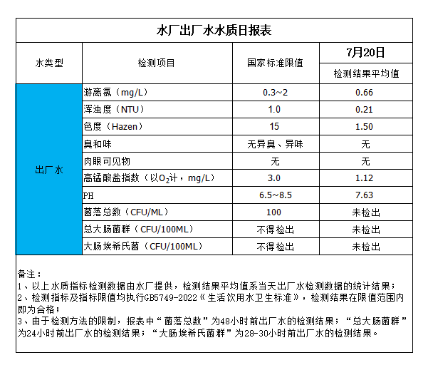 水廠出廠水水質(zhì)日報(bào)表(2024-7-20)